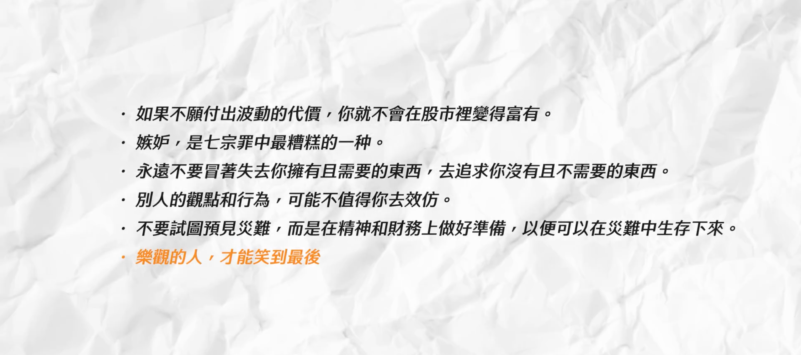 没有人能做到完美的趋利避害,拥有乐观的心态,做好面对灾难的心理和财务上的准备。